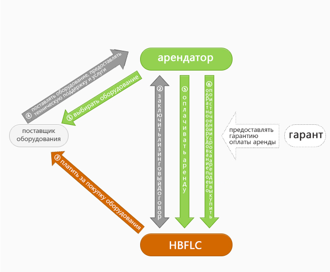 По желанию клиента лизинговая компания выбирает поставщика, покупает у него арендуемый объект и сдает его в лизинг арендатору. Лизинговая компания имеет право собственности на арендуемый объект, клиент имеет право владения и использования арендуемого объекта. Арендуемый объект отражается в балансовом отчете клиента. На него очень мало влияет ранее финансовое состояние клиента, срок аренды и арендная плата могут гибко регулироваться с учетом финансового состояния клиента.